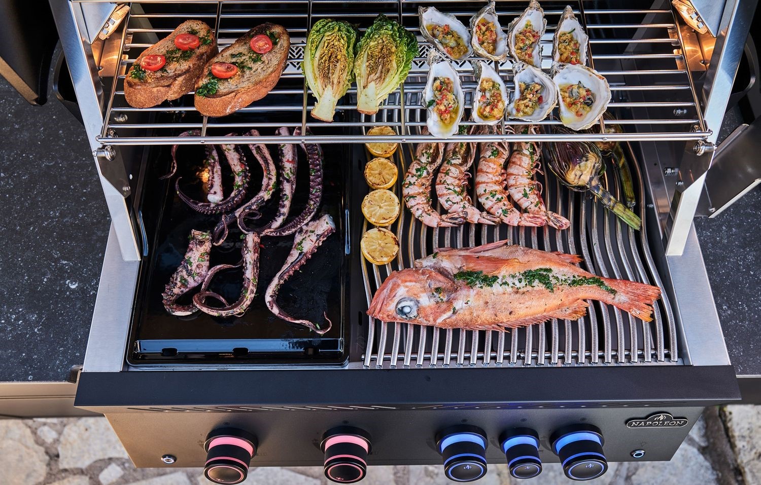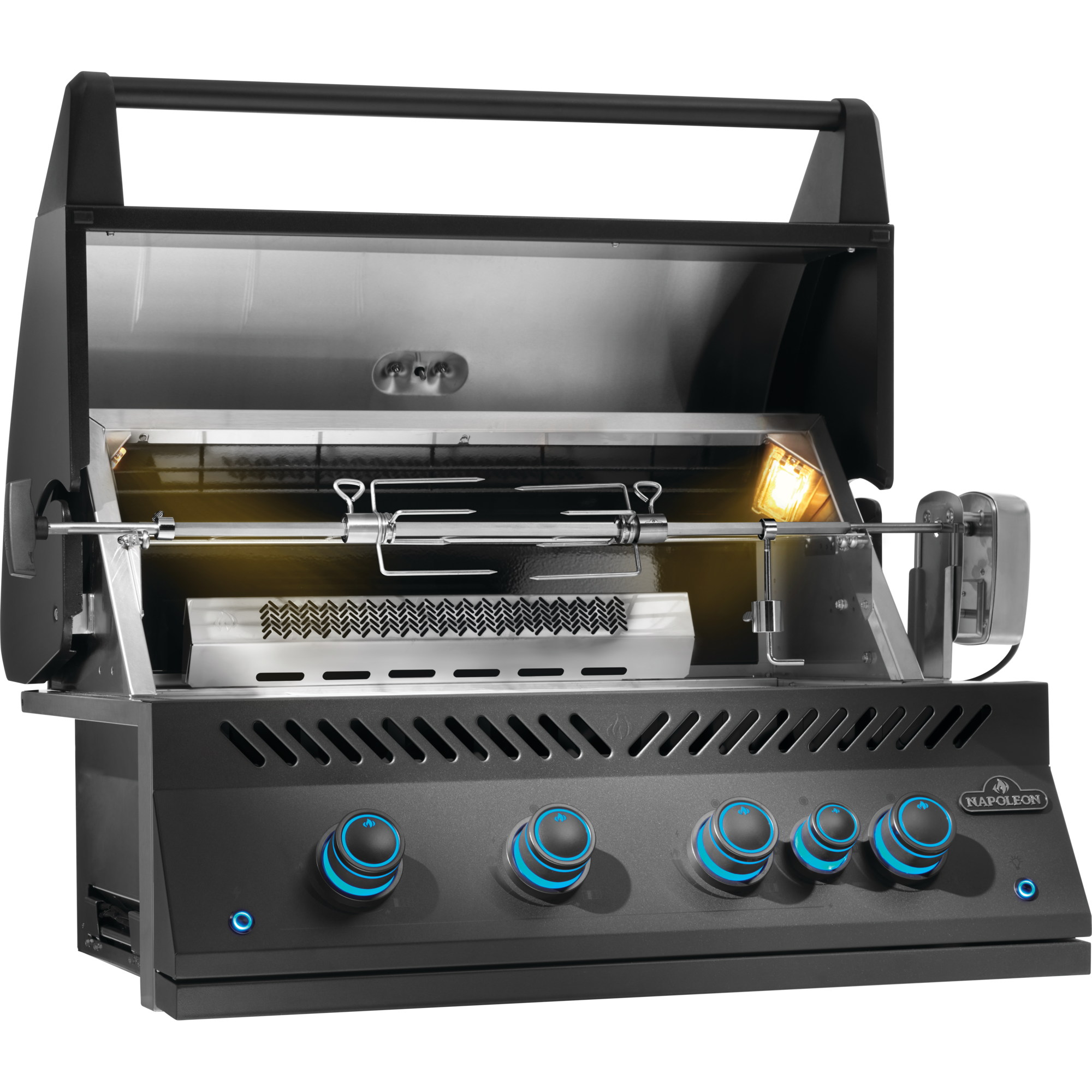 Встроенный газовый гриль Napoleon BIG 32 — это воплощение инженерной точности, идеального контроля жара и изысканного стиля. Благодаря мощной конфигурации из пяти горелок, включая заднюю горелку для вертела, вы получаете не просто гриль, а полноценную многофункциональную кулинарную станцию.