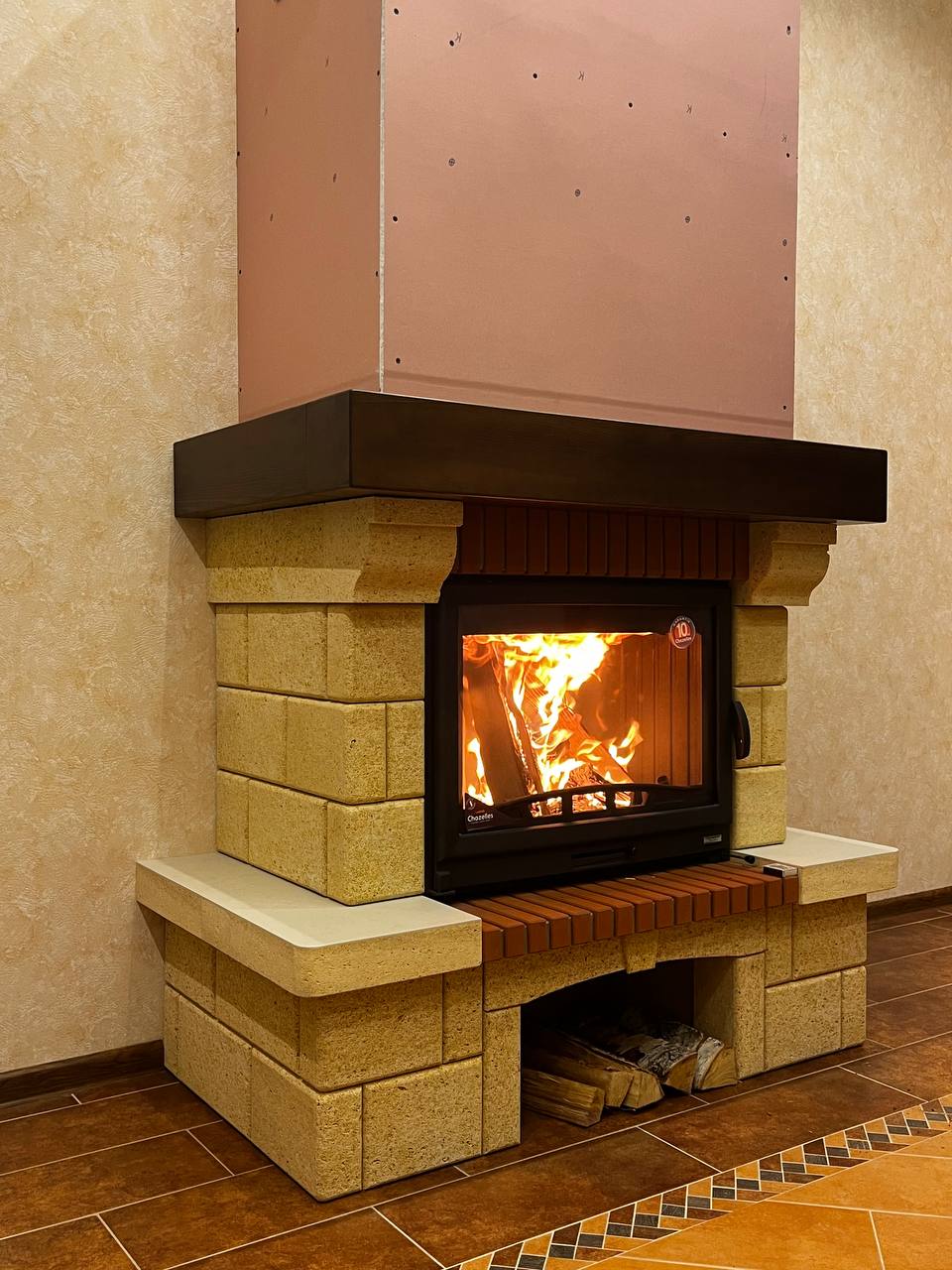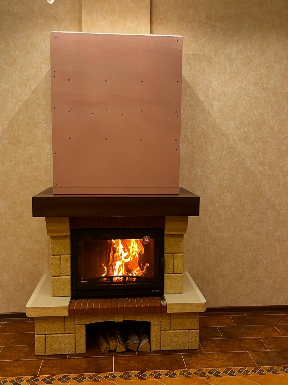 Купили такую облицовку под 700 топку, боялся что не подойдет, как выяснилось данный производитель легко адаптирует под любую топку, смотрится шикарно. Монтаж сам делать не стал, приехал специалист и все собрал за 2 дня. В интерьере смотрится легко, подошла идеально, камень по качество очень мощный))